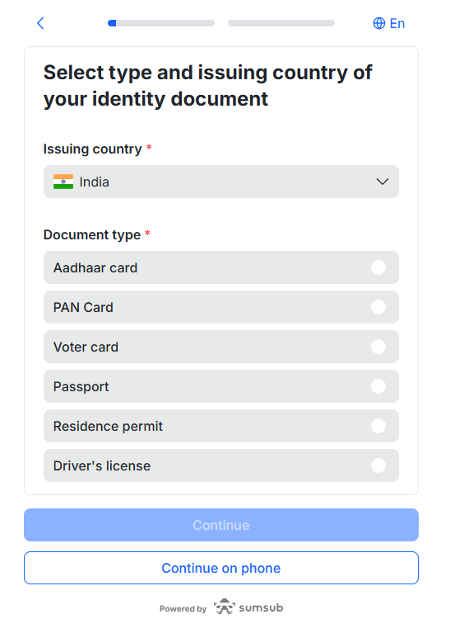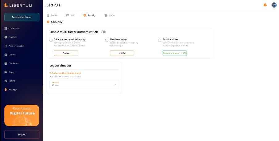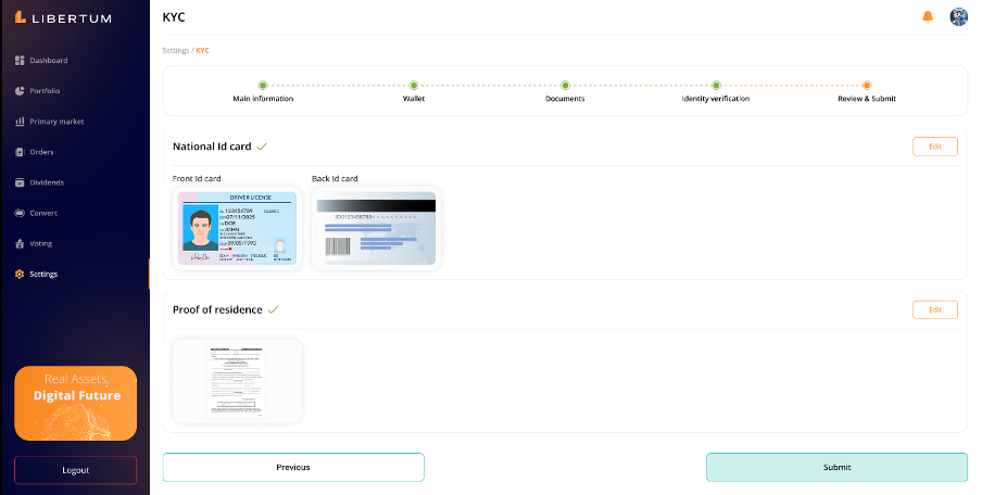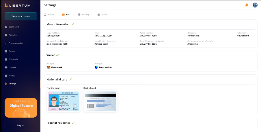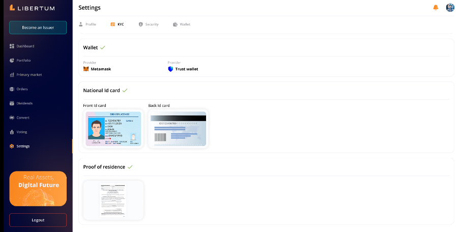 “KYC” section under the Settings tab manages all the KYC related functionalities of the user.
