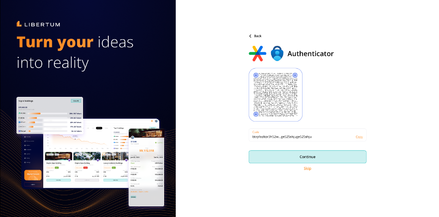 ● Setting up the authenticator by scanning the QR code or entering the code manually.