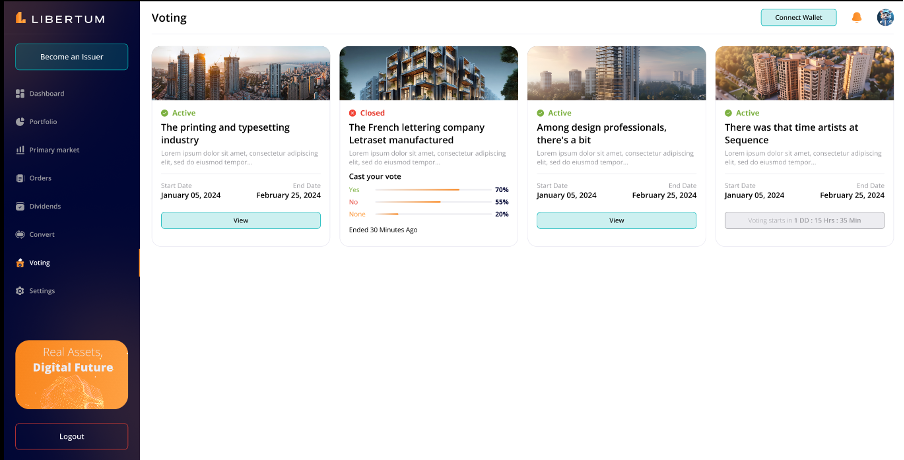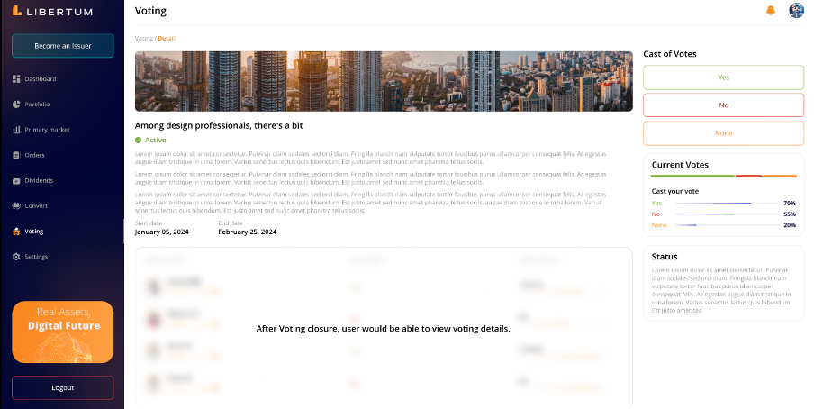 The “Voting” section enables the investors to participate in decision-making processes for the offerings they have invested in.