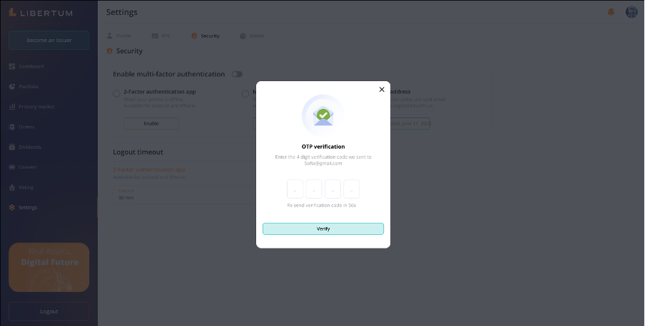 The Verify button will be enabled after entering the verification code